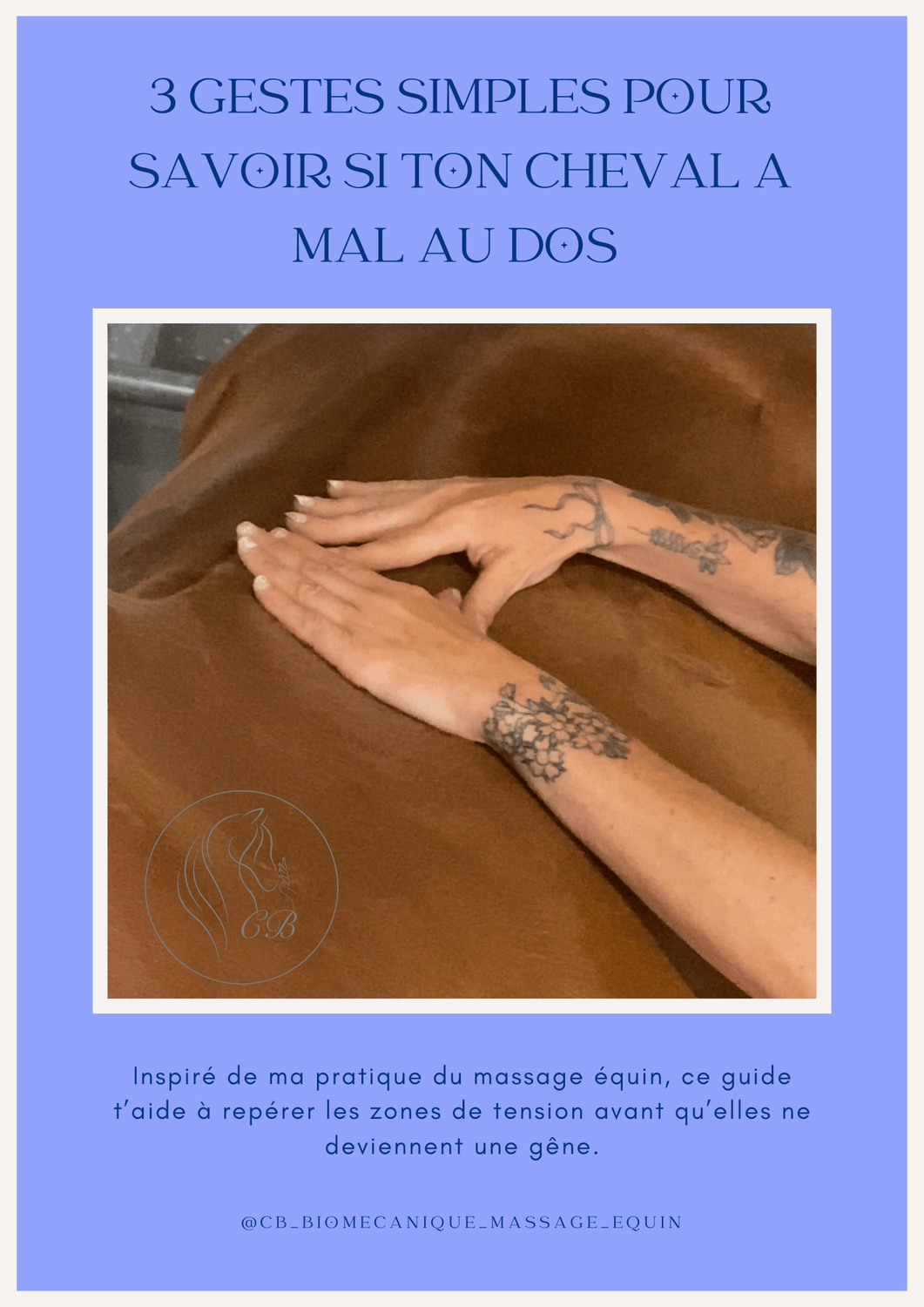 C’est pour ça que j’ai créé ce guide : pour te transmettre des gestes simples et sûrs, basés sur mon expérience de terrain, afin que tu puisses mieux comprendre ton cheval avant que la douleur ne s’installe.